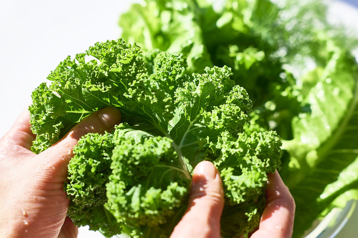 アクアポニックス産の香り高くやわらかなケールに自家製ハーブチキンを合わせ、仕上げにコクのあるパルメザンチーズをトッピングしました。