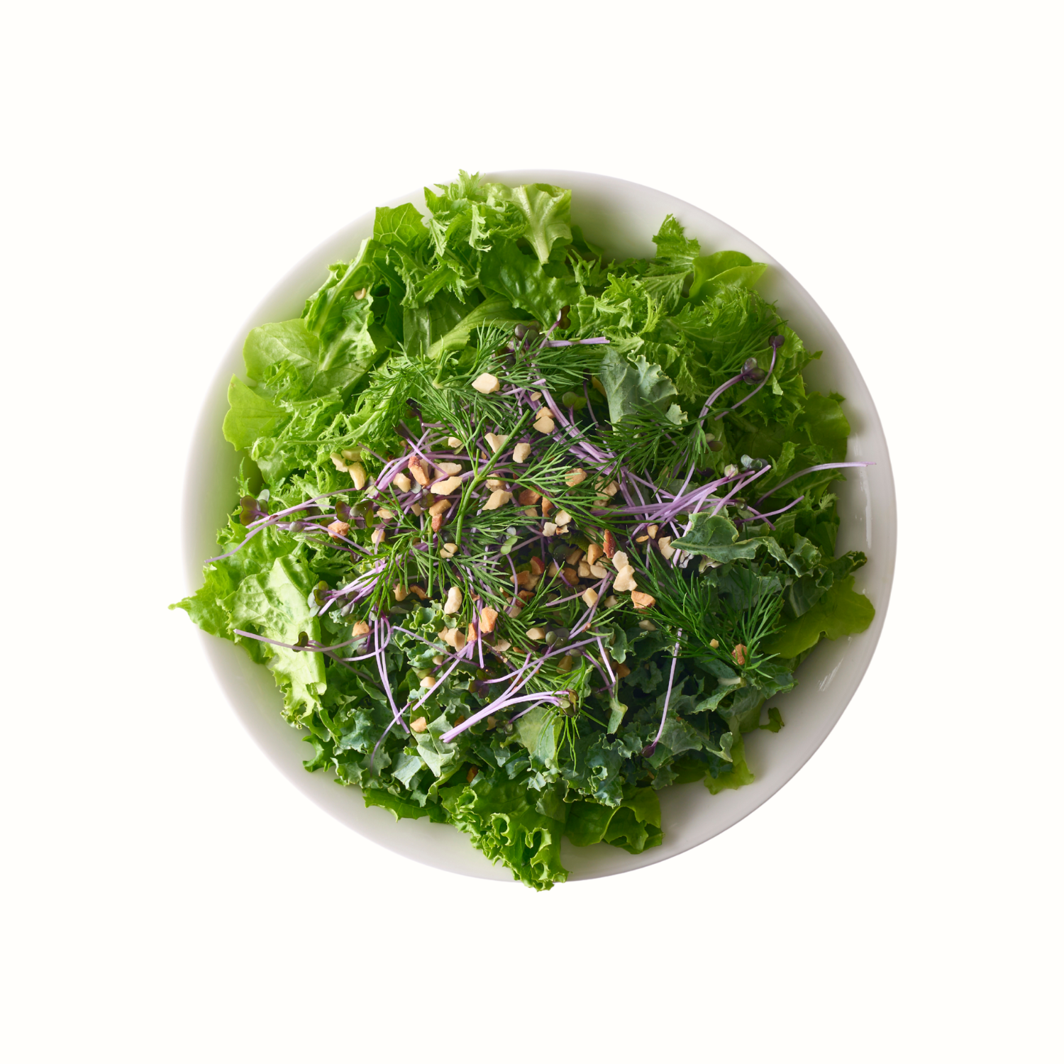 アクアポニックス産の野菜だけでつくる、プラントベースのグリーンサラダです。